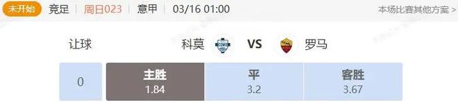 本场比赛行业数据给了主队让0.25的支撑面,后市市场信心主流已经有所提升主让0.5,符合双方的一个状态和阵容对比。罗马上次客场取胜还是在一月底,而且对手还是都灵和莱切两队保级队,遇到强队逼平那不勒斯已经是他们的天花板。罗马现在不仅进攻无力,防守端更是场场 失球,攻防都低迷的情况下根本无法抵挡意甲新贵的冲击,这场比赛看好科莫取胜。